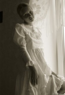 Blonde girl in a black and white posing scene