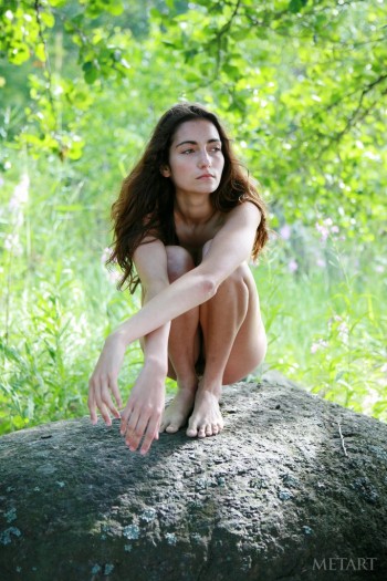 Long haired brunette takes a walk in the forest. The day is warm and it would be a pity to spend it cooped up inside. Since there is no one around, the girl feels free enough to get undressed.