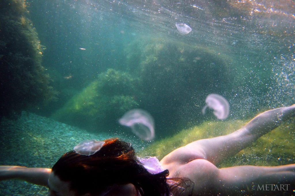 Two gorgeous ladies are having so much fun diving and swimming around with each other in the middle of the ocean, while being absolutely naked.