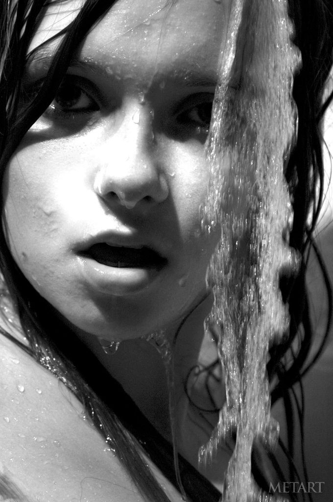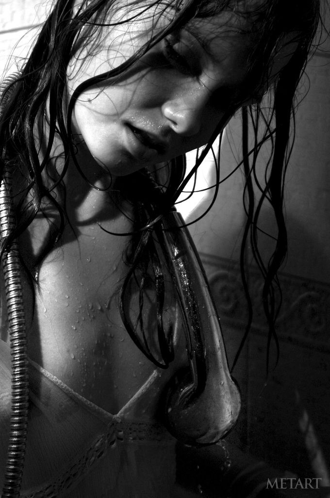 Classy black and white photos of charming teenage lady under the shower. Her wet dress and those fantastic titties looks so sexy and hot.