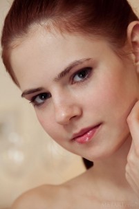 Naughty and playful brunette babe puts on striped socks when she decides to open her shaved pussy lips and to finger her sweet hole till orgasm