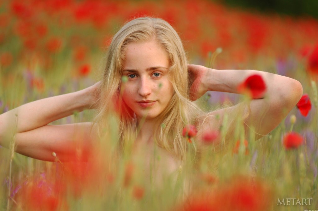 A cute blonde loves having naked fun outside so she gets out of her clothes and picks some flowers from a field while completely naked.