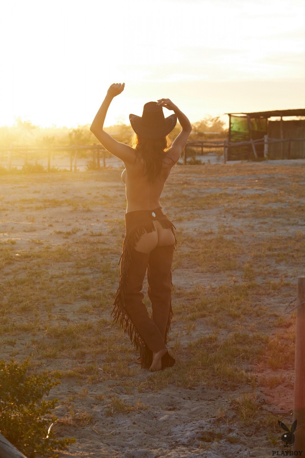 Hot brunette adores horses so much that she is ready to ride a horse all day long and finally she comes up to an idea of riding totally naked