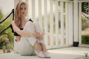 Slim blonde with big natural boobs wears only a tiny black lingerie set when she decides to spend her day outdoors but soon she feels bored and hot, so she takes off her outfit